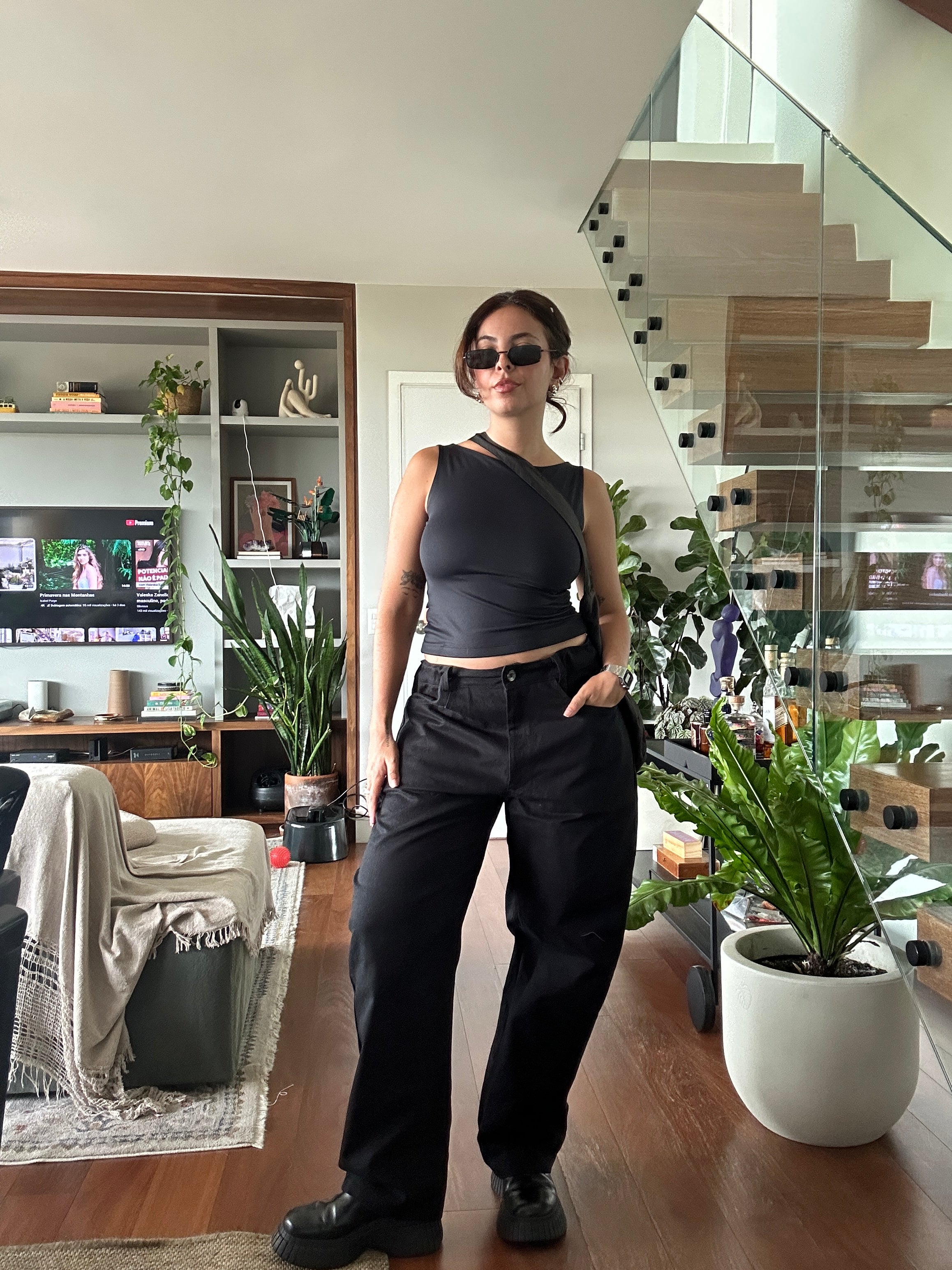 calça ajustável de sarja balloon