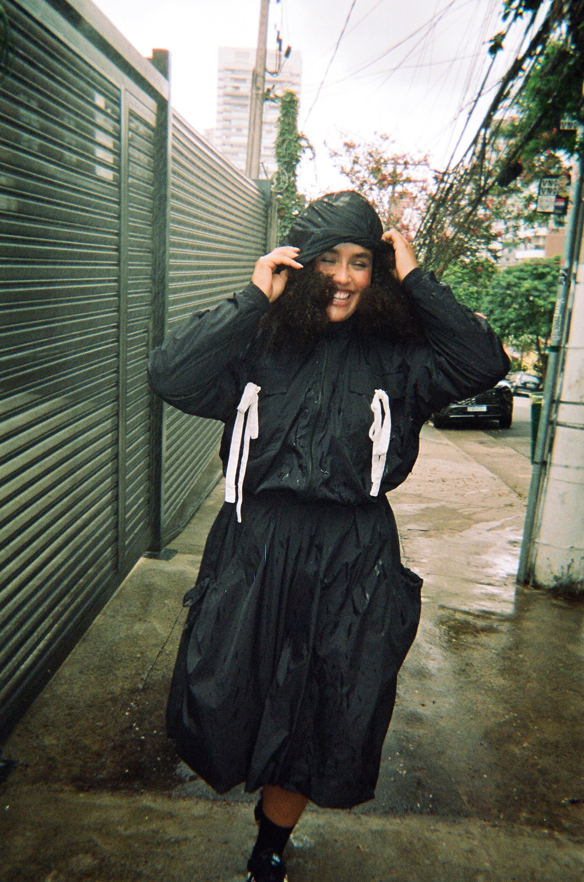 - tecido de poliamida repelente à água (não impermeável) e tecnologia de secagem rápida, ideal para uso urbano e em dias de garoa leve