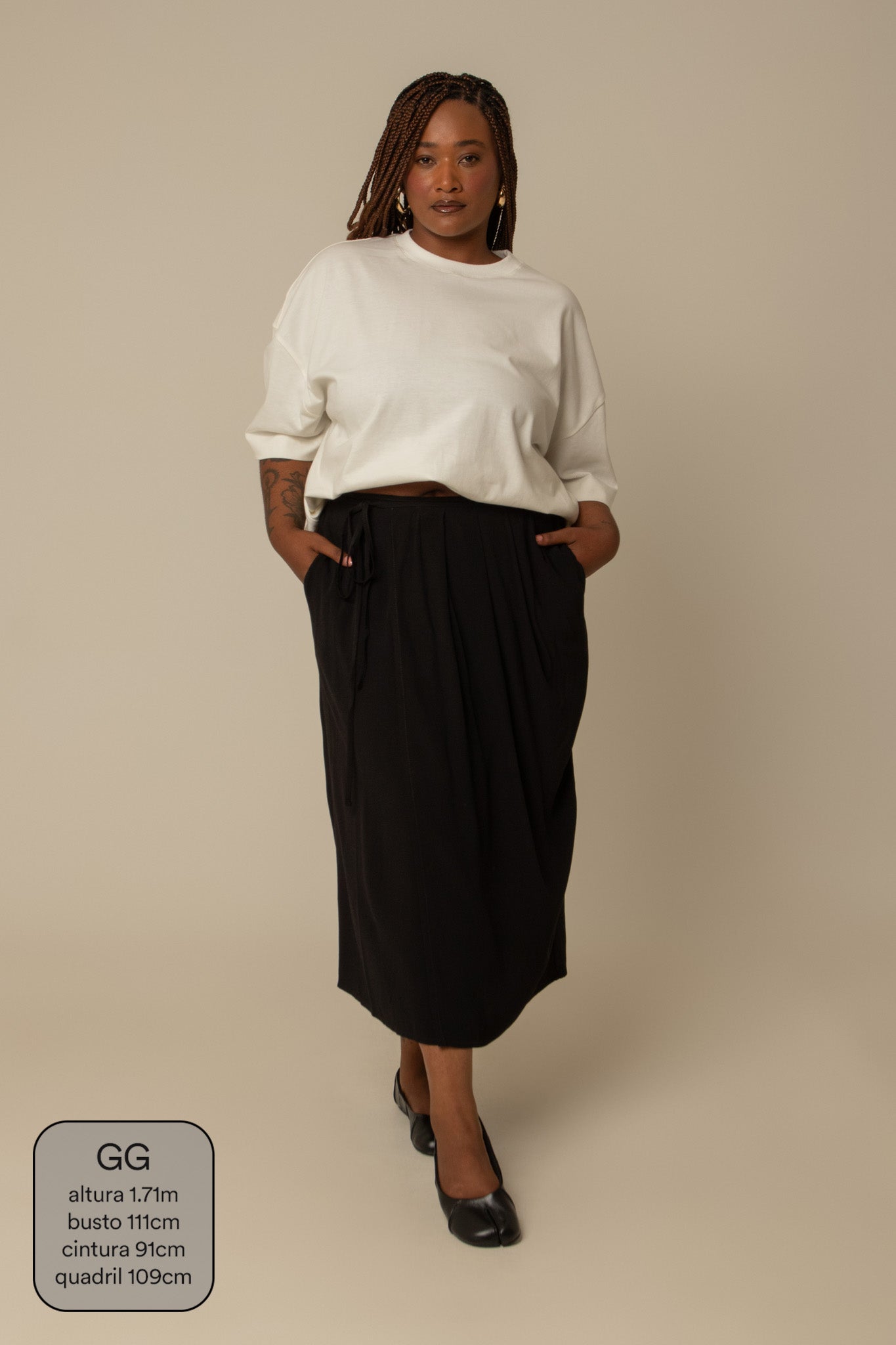 saia midi envelope com bolsos